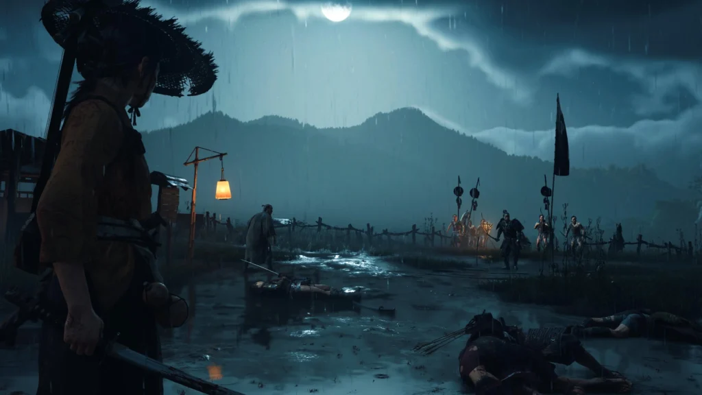 Logo nos primeiros minutos já dá para entender que a Sucker Punch continua dominando a direção de arte. O mundo de Yotei é deslumbrante a ponto de fazer você querer caminhar devagar só para observar tudo ao redor. As cores, a iluminação, o clima… tudo ajuda a construir essa sensação de estar em um lugar vivo, mesmo que em constante ameaça.